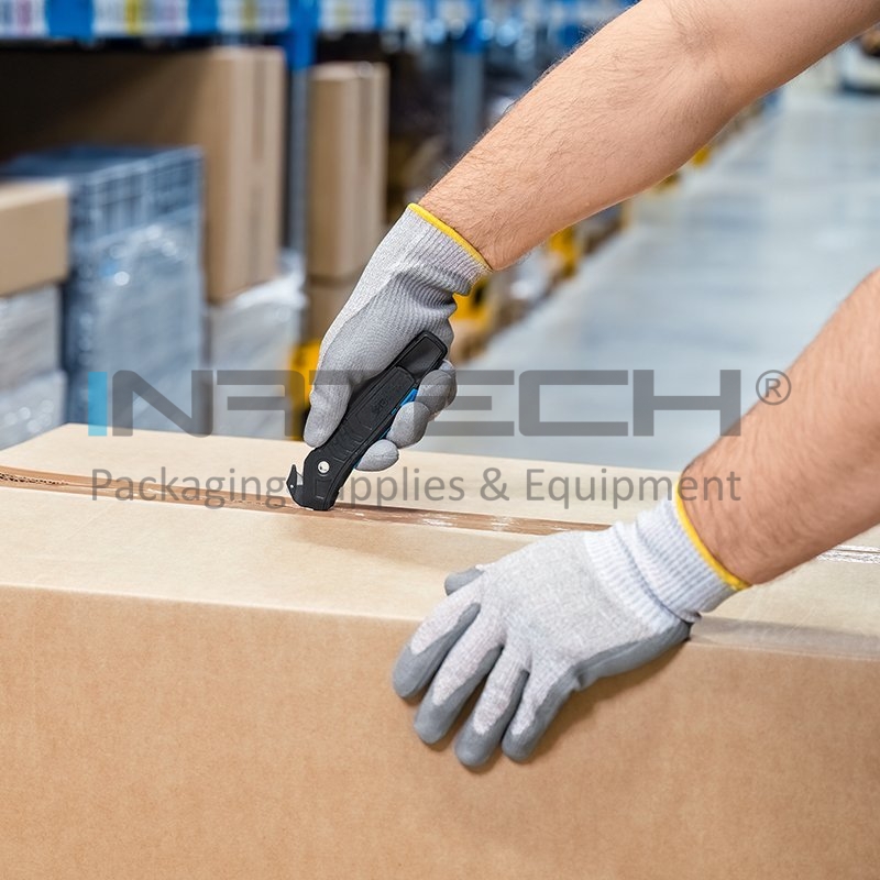 Sistemul de prindere in unghi de 45° este special proiectat pentru a permite taierea optima a foliilor sub presiune, asigurand o taiere curata si precisa, cu minim de risipa. Acest mecanism imbunatateste eficienta procesului de ambalare, facandu-l ideal pentru taierea rapida a materialelor de protectie sau a foliilor de paletizare.