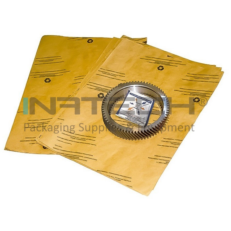 Substantele active VCI se evapora din materialul purtator (hartie, folie LDPE, folie stretch, folie cu bule de aer) in spatiul incapsulat al ambalajului;