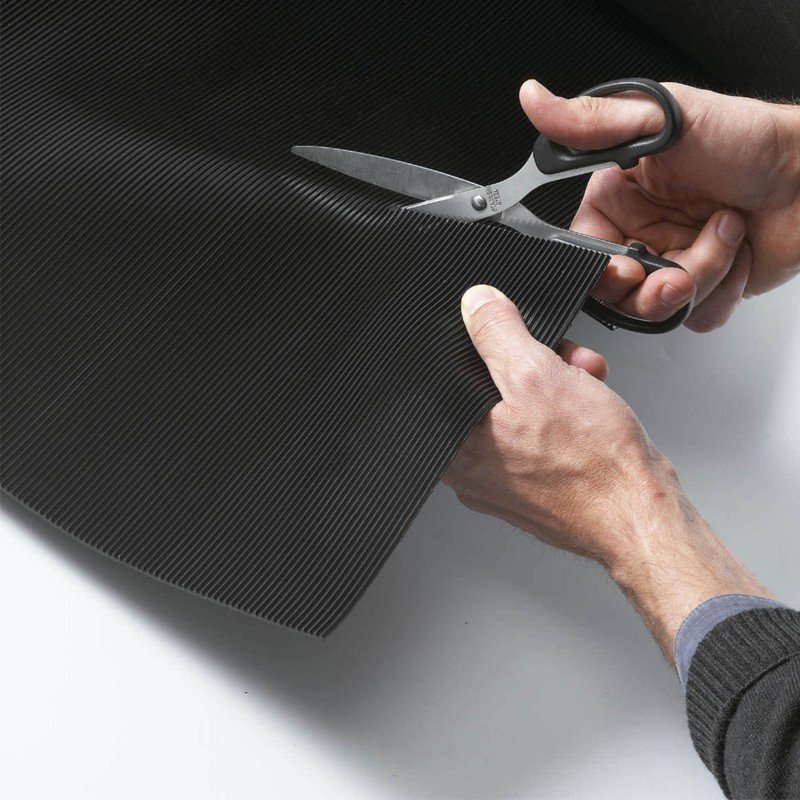 Banda Antiderapanta Ridata este fabricata dintr-un material plastic, dar este aproape imposibil de distins fata de un material din cauciuc, aspectul ei apropiindu-se de cel al unui produs din cauciuc cu nervuri, dar cu avantajele unui compozit din plastic.