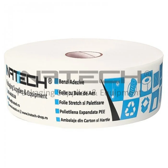 Banda Adeziva Umectibila Personalizata, Lungime 200 m, Numar Culori 1 Culoare, Latime 60 mm, Adeziv Amidon, Tip Imprimare Pe Suprafata, Culoare Alb, Buc / Pachet 250