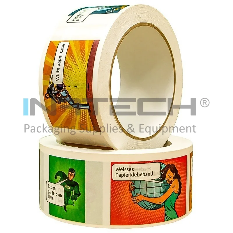 Banda Personalizata Hartie Lungime 50 m, Adeziv Hot Melt, Numar Culori 3 Culori, Latime 48 mm, Tip Imprimare Pe Suprafata, Culoare Alb, Buc / Pachet 540