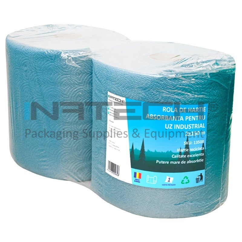Prosopul din hartie de uz industrial este confectionat dintr-un strat de celuloza pura 100%, de culoare albastra. Rola Hartie Industriala Albastra are proprietati excelente de absorbtie, pastrandu-si caracteristicile mecanice chiar si atunci cand este uda.
