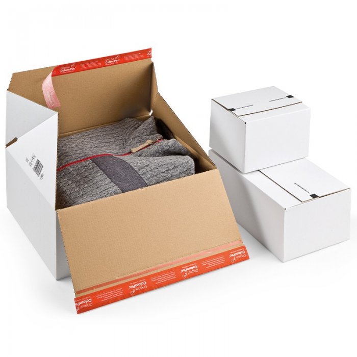 Datorita celor doua benzi adezive pentru sigilare, cutia poate fi reutilizata sau returnata dupa deschidere. Cutiile din carton sunt potrivite pentru o mare varietate de articole si pot fi folosite pentru a stoca sau expedia produse. Cutia cu autoformare ColomPac este un produs certificat FSC®.