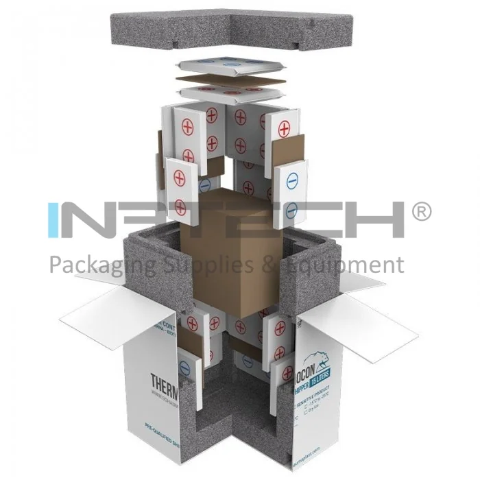 Cutiile termoizolante pentru transport sunt dedicate asigurarii protectiei pasive a produselor farmaceutice, biotehnologice si altor bunuri sensibile la temperatura. Ambalajele termo precalificate sunt concepute pentru a mentine temperatura constanta intre +2°C si +8°C, oferind astfel o solutie integrala pentru cerintele de transport in medii reci.