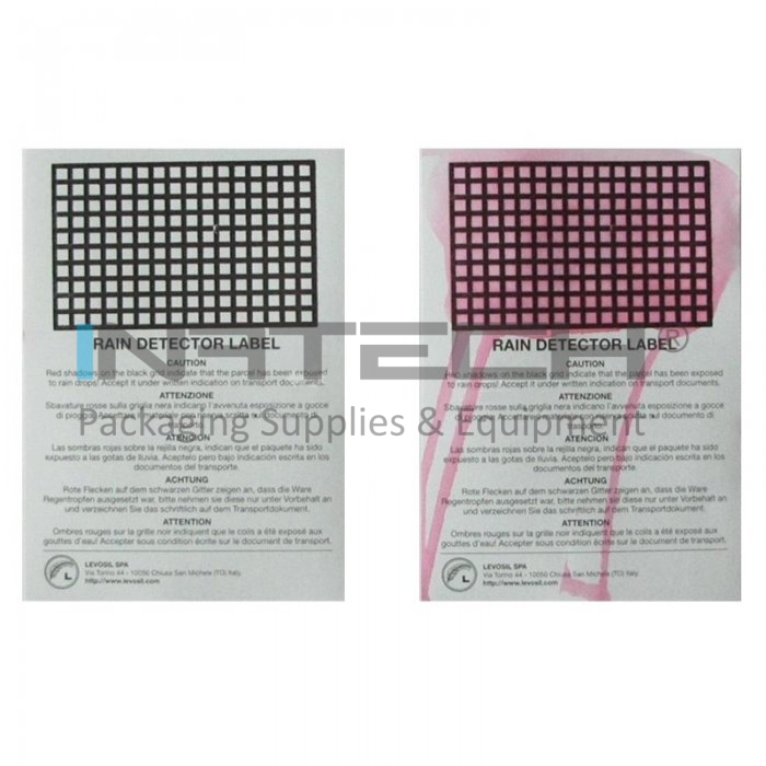 Eticheta autoadeziva detector de ploaie poate fi usor de fixat pe orice tip de ambalaj, iar indicatiile sunt usor de citit. Schimbarea culorii se face in mod ireversibil, iar prezenta etichetei va garanta calitatea transportului.