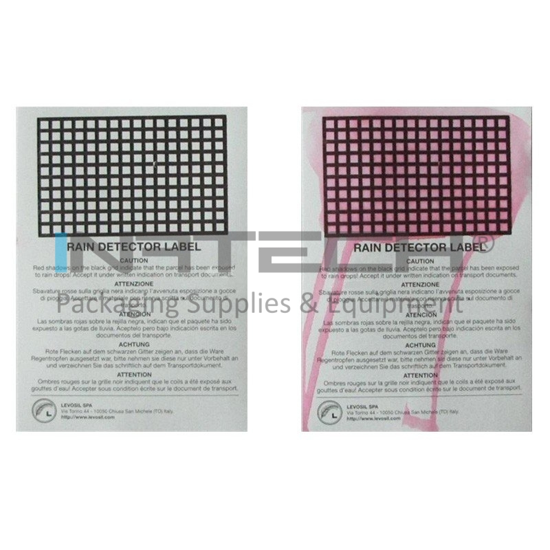 Eticheta Detector De Ploaie indica daca bunurile sau produsele au venit in contact cu picaturile de ploaie sau lichide pe timpul depozitarii sau transportului.