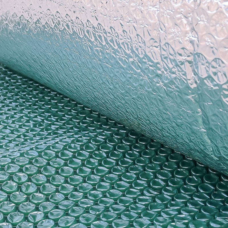 Folie Bule Mari Aluminizata obtinuta prin aplicarea unui film AL PET 24 my pe o suprafata a foliei cu bule si un film PET transparent 11 my aplicat pe partea opusa. Se obtine un produs cu proprietati excelente la socuri si vibratii si in egala masura la radiatii termice.