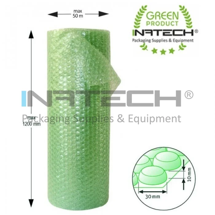 Folie cu bule mari Eco Friendly, latime 600 mm, lungime 50 m, grosime 120 my, culoare verde