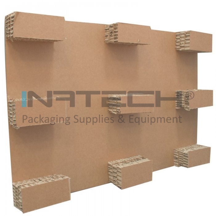 Paletul din carton tip euro suporta aceeasi greutate ca si paletul din lemn, este mult mai ieftin, usor de manipulat, ocupa un volum de depozitare si transport redus, este total reciclabil si biodegradabil, ecologic, poate fi folosit si in contact cu alimentele, nu prezinta pericol de infestare cu ciuperci sau insecte, nu retine mirosul si umiditatea.