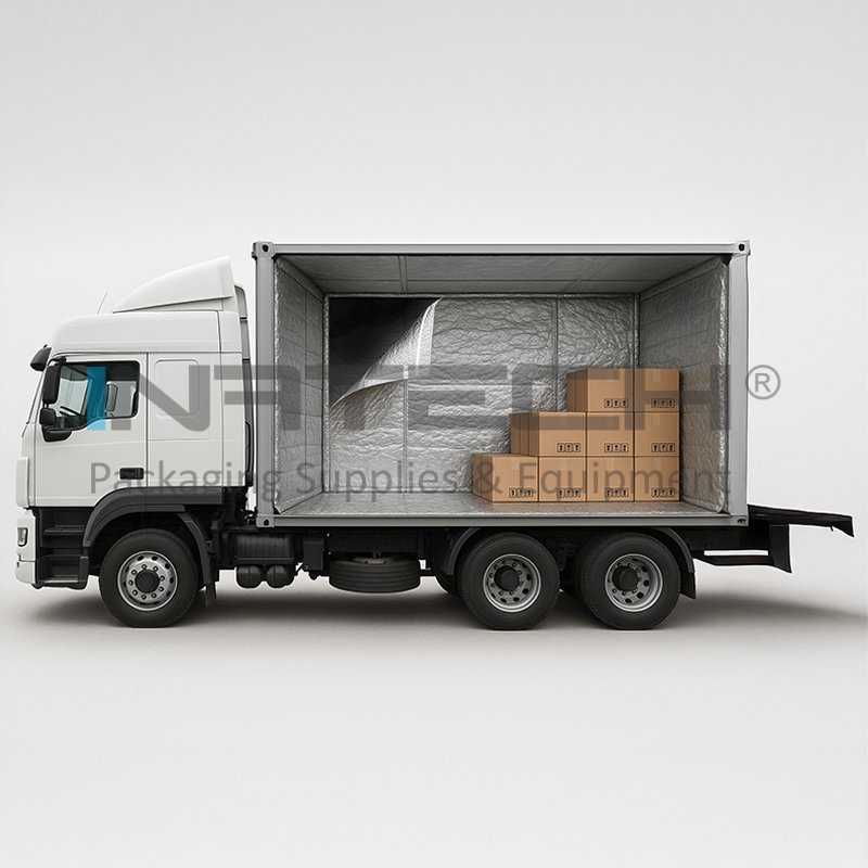 PERFORMA® Container Insulation este o solutie avansata de izolare termica conceputa pentru a proteja marfurile sensibile la temperatura in timpul transportului si depozitarii. Rola din aluminiu actioneaza ca o bariera impotriva variatiilor termice, mentinand temperatura constanta in interiorul containerului. Este ideala pentru logistica lantului frigorific, industria farmaceutica, medicala, alimentara, e-commerce si transport maritim sau aerian. Materialul este usor de instalat, personalizabil ca dimensiuni si echipat cu banda adeziva pentru o aplicare rapida.
