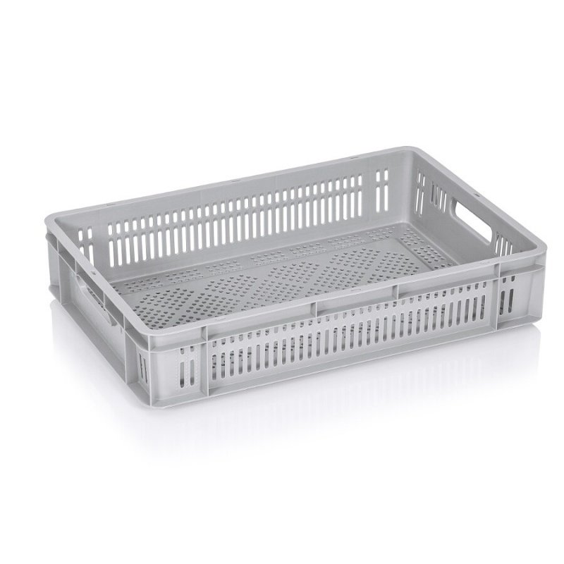 Product Technical DataDimensiuni Externe600 x 400 x 120 mmDimensiuni Interne560 x 360 x 115 mmGreutatea Produsului1.000 kg ±5%Capacitate23 litersGreutate Statica150 kgGreutate Dinamica10 kgNumar de Bucati pe Europalet88 bucMaterialPPCulori StandardGRIProduct applications