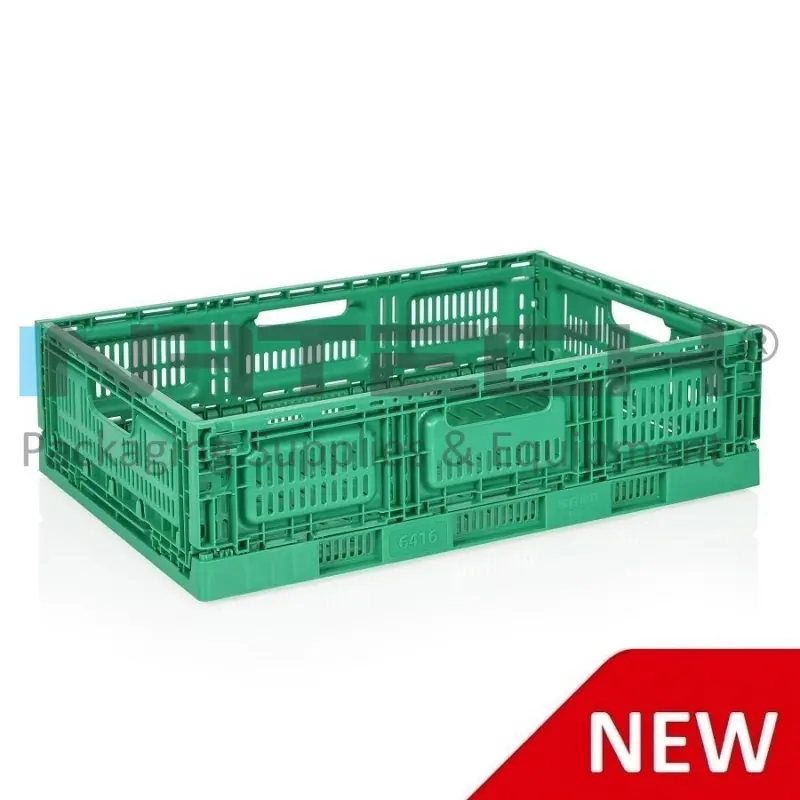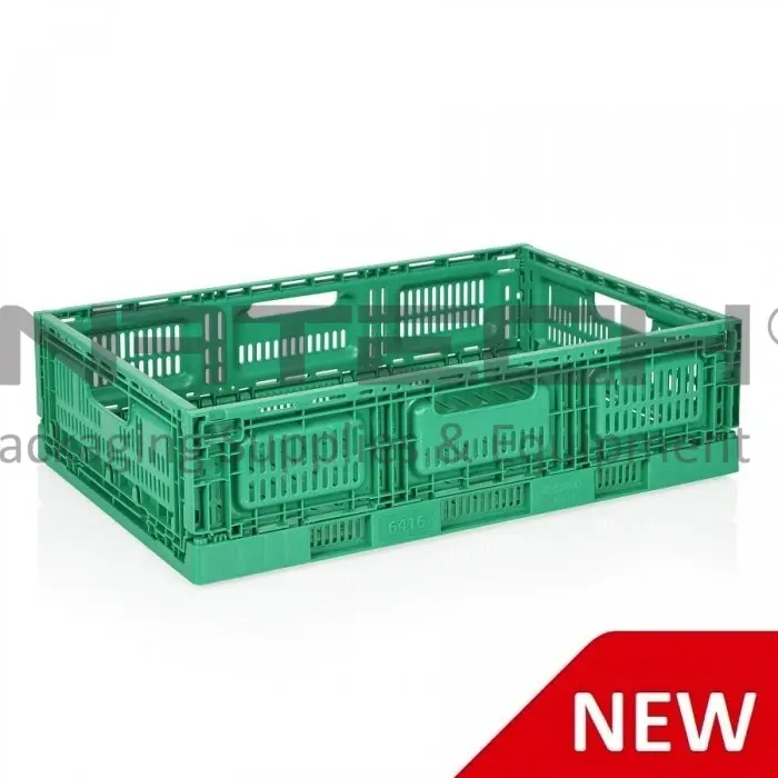 Date Tehnice ProdusDimensiuni Externe /Nepliate/600 x 400 x 155 mmDimensiuni Externe /Pliate/600 x 400 x 35 mmDimensiuni Interne570 x 370 x 150 mmGreutatea Produsului1.655 kg ±5%Capacitate31 litriGreutate Statica220 kg.Greutate Dinamica13 kg.Numar de Bucati pe Europalet /Nepliate/60 bucNumar de Bucati pe Europalet /Pliate/272 bucMaterialPP Culori StandardVERDEAplicatii ale produsuluiAGRICULTURA