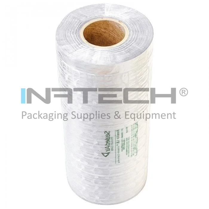 Rola film pentru masina ambalat New Air Express este transparenta, de culoare alba si se produce la doua dimensiuni, 40 cm latime, respectiv 80 cm latime. Poate avea lungimi diferite, 762 m, 457 m, 610 m, 579 m, lungimea unei foi de protectie fiind de 32 cm (bucata dintre perforatie, unde se rupe folia).