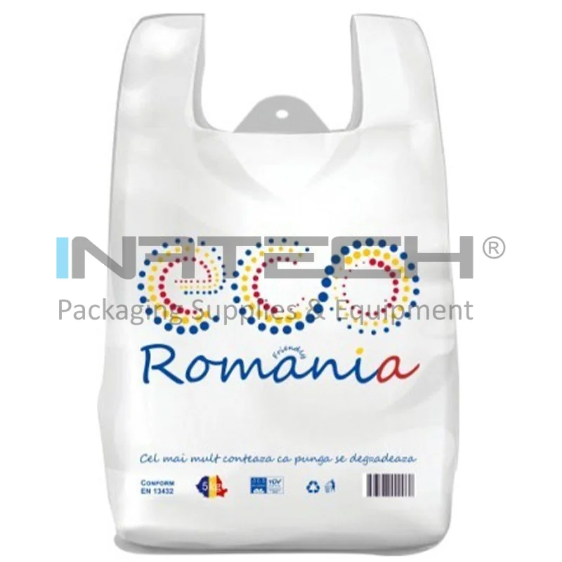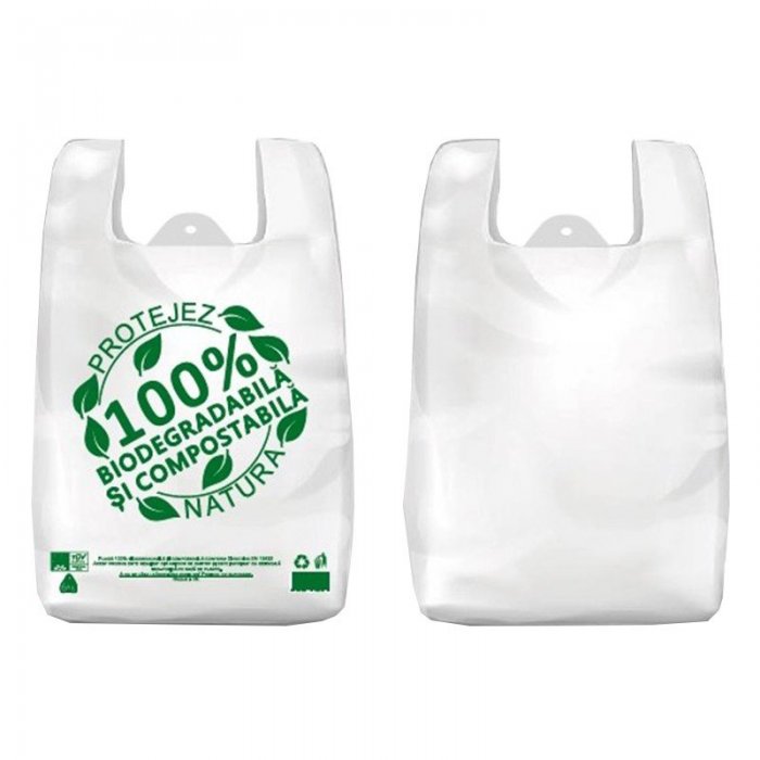 Sacose Biodegradabile compostabile, pungi in conformitate cu Directiva EN 13432. Punga biodegradabila expira doar in momentul cand aceasta intra in contact cu un mediu organic. Pungile biodegradabile compostabile sunt fertilizante pentru sol, deoarece sunt produse din amidon din cartofi si folosesc tehnologia BIOCARTENE si certificate in Bruxelles cu OK COMPOST si VINCOTTE conform Directivei EU 13432.