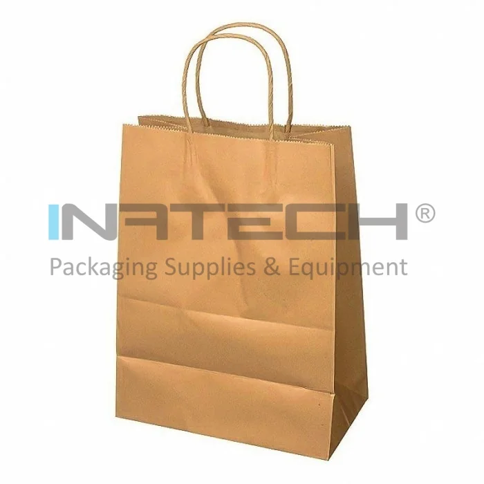 Pungi Hartie Cu Maner Rasucit, Alb/Natur Dimensiuni 250 x 140 x 300 mm, Tip Maner Sfoara, Material Hartie 90 gr/m2, Culoare Natur, Buc / Pachet 100