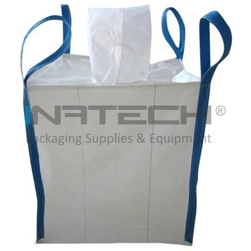 – in functie de natura incarcaturii (pulberi sau produse alimentare), sacii big bags simpli pot fi prevazuti cu folie din polietilena devenind astfel impermeabili (pot fi astfel utilizati pentru protectia marfurilor hidroscopice impotriva umezelii sau la ambalarea pulberilor fine cu scopul de a evita pierderile sau scurgeri de material prin tesatura)